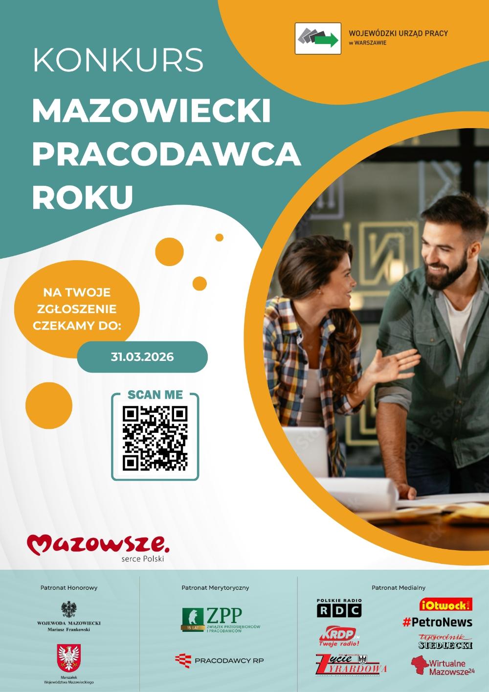 Ruszył konkurs „Mazowiecki Pracodawca Roku”, którego celem jest wyróżnienie pracodawców z województwa mazowieckiego, którzy w sposób szczególny angażują się w rozwój kapitału ludzkiego, inwestują w podnoszenie kompetencji pracowników oraz aktywnie współpracują z instytucjami rynku pracy. Konkurs promuje dobre praktyki sprzyjające rozwojowi zawodowemu, tworzeniu nowych miejsc pracy oraz wzmacnianiu lokalnego rynku pracy.